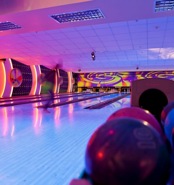 Magic Bowling offers 12 lanes of cosmic bowling pleasure for all ages, accompanied by music.
