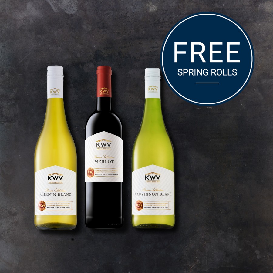 Enjoy a Complimentary Prawn Spring Rolls when you order a bottle of KWV Classic Merlot, Sauvignon Blanc or Chenin Blanc.